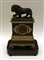 Pendola da tavolo in bronzo brunito e dorato cesellato a palmette e motivi vegetali. Quadrante firmato, in metallo argentato a numeri romani, sormontato da figura di leone a tutto tondo, base in legno ebanizzato. Movimento con carica settimanale, sospensione a filo(h cm 44)(difetti, manca la chiave di carica)