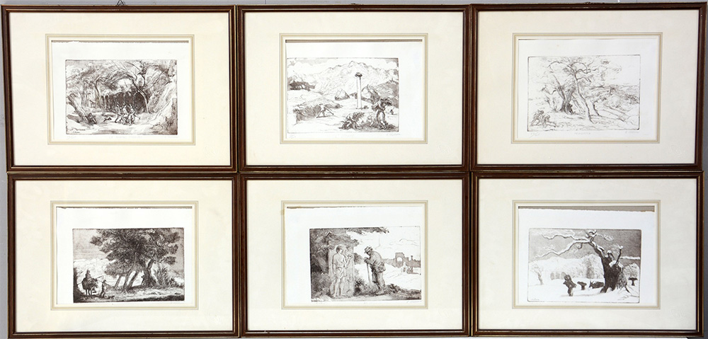 Gruppo di sei acqueforti firmate a lapis Hebborn e numerate, in cornici (lievi difetti)