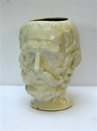 Manifattura italiana, vaso in ceramica bianca raffigurante due teste bifronti (h cm 33) (difetti)