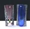 Lotto di due vasi in vetro trasparente blu e rosa. (h cm 44; h cm 42)