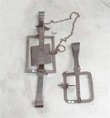 Lotto di due tagliole da orso e da lupo, secolo XIX (lievi difetti)