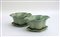 Coppia di vaso e sottovaso in porcellana ad invetriatura celadon a guisa di...