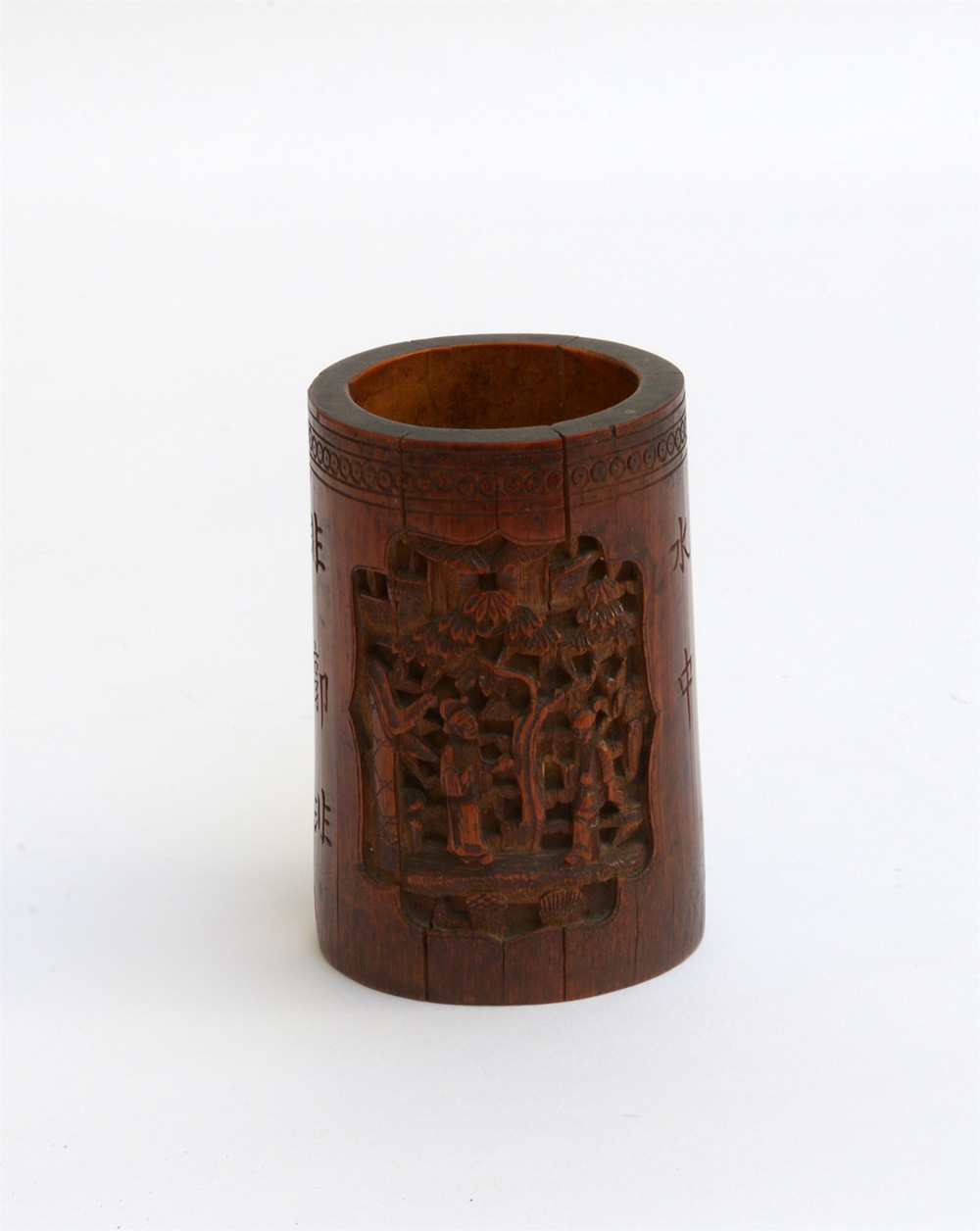 Porta pennelli in bamboo decorato con fenice paesaggi e iscrizioni calligrafiche (difetti)