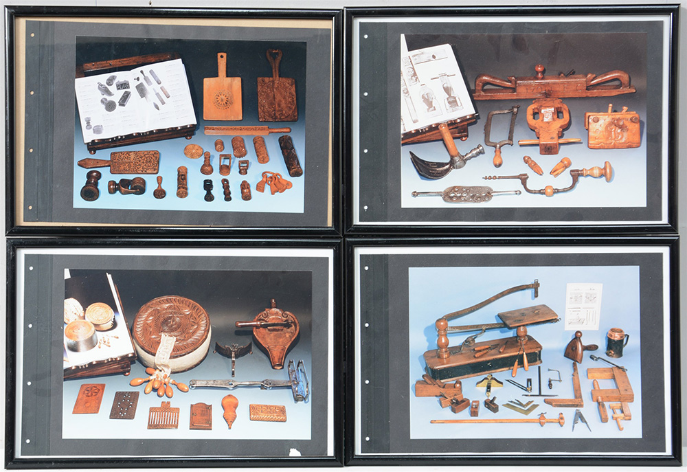 Lotto composto da quattro fotografie di oggetti arte popolare. In cornici (cm 24x34)