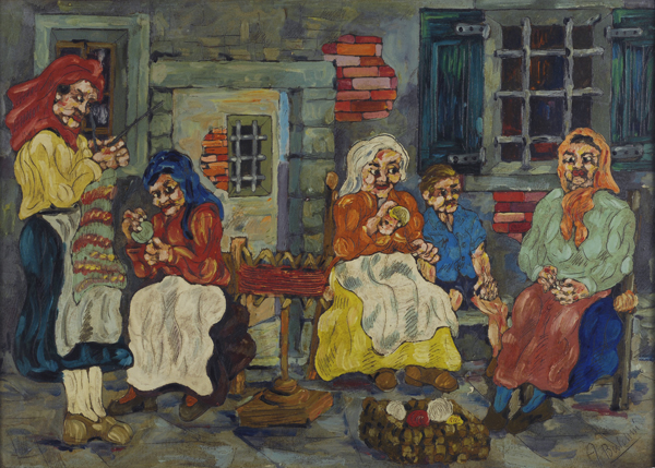 Alighiero Baldini (Scandicci, 1916) Il lavoro a maglia, 1981 Olio su cartone, cm. 50x70 Firma in basso a destra. Sul verso: firma, titolo e data. € 200/400