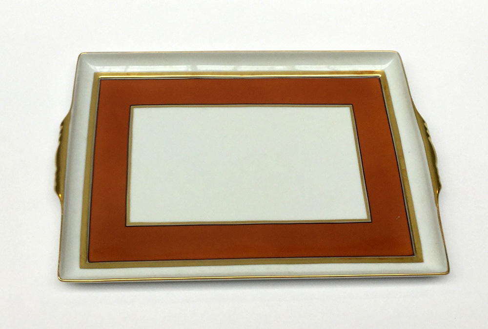 Vassoio biansato in ceramica, Richard Ginori (cm 32x23). In custodia originale