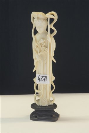 Scultura in avorio raffigurante immortale femminile, base in legno (lievi...