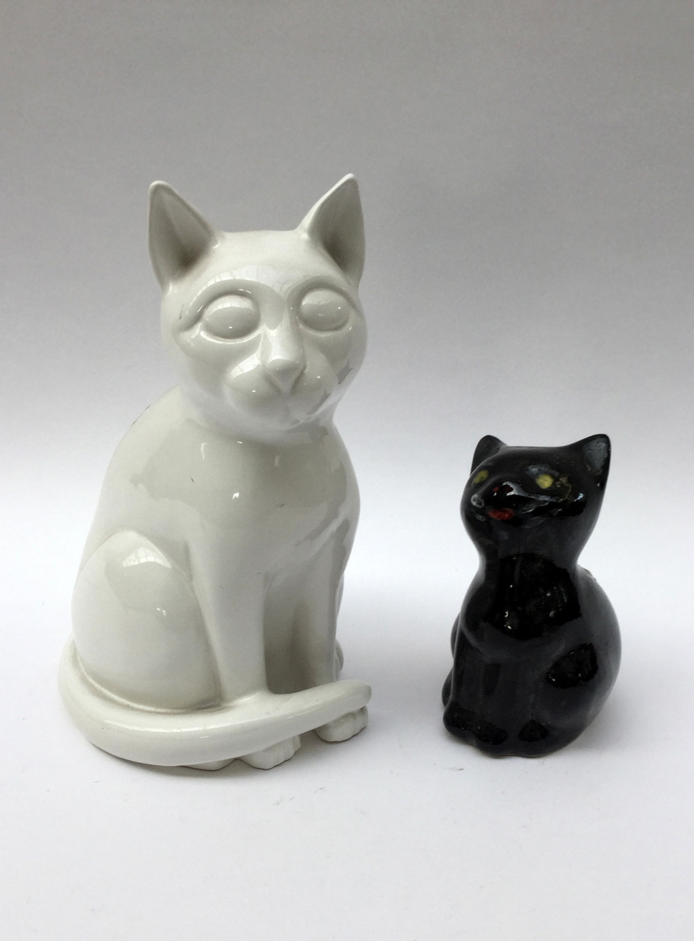 Lotto composto da due gatti in ceramica firmati Sormani e Lucifero (h max cm 29)
