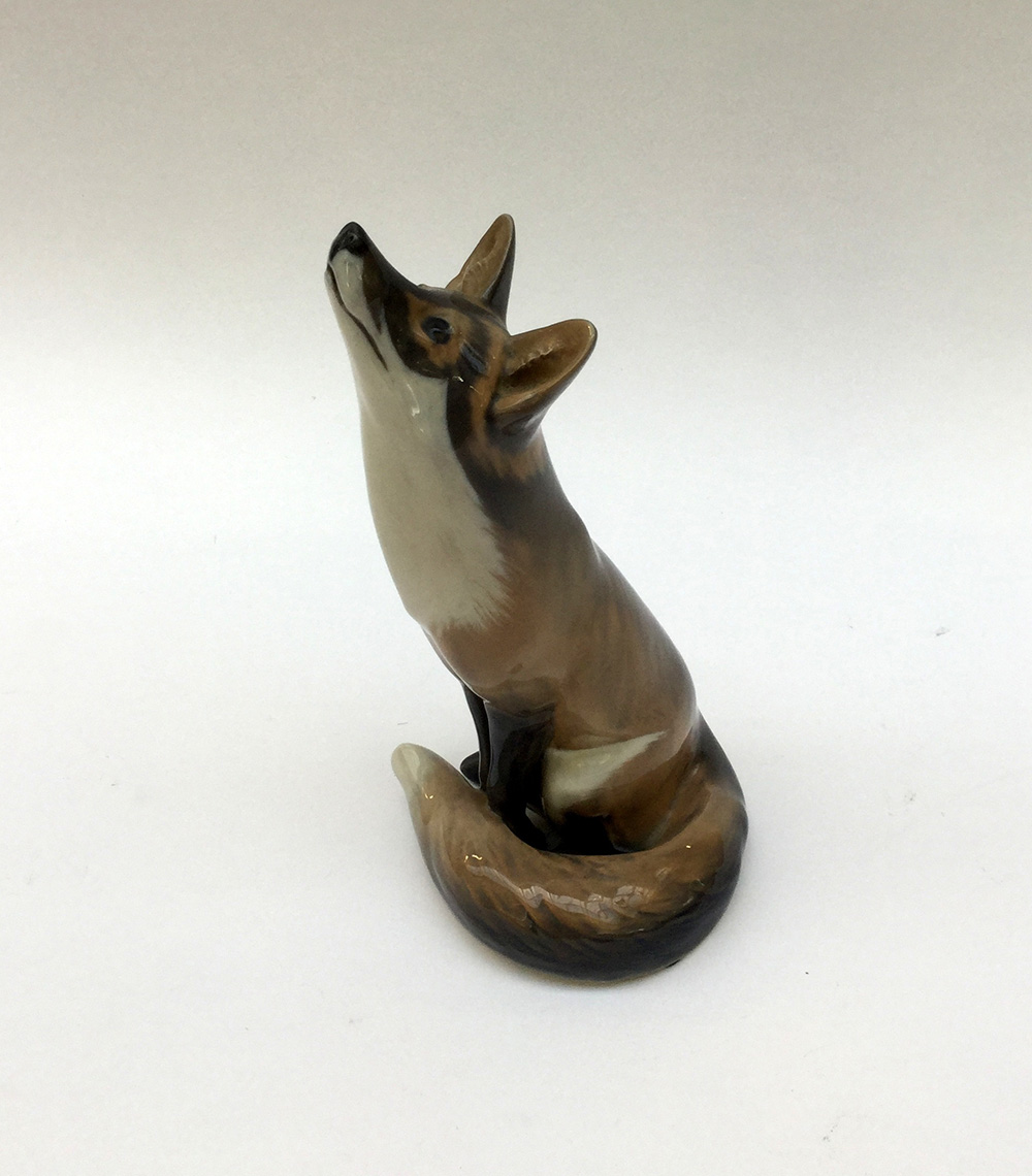 Volpe in ceramica, decorata in policromia. Manifattura di Royal Copenaghen (h cm 27)