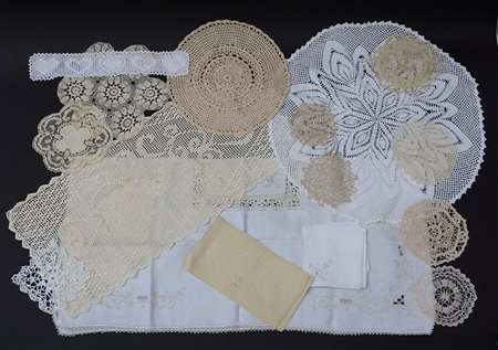 Cartone contenente alcuni centrini e una tovaglietta da the