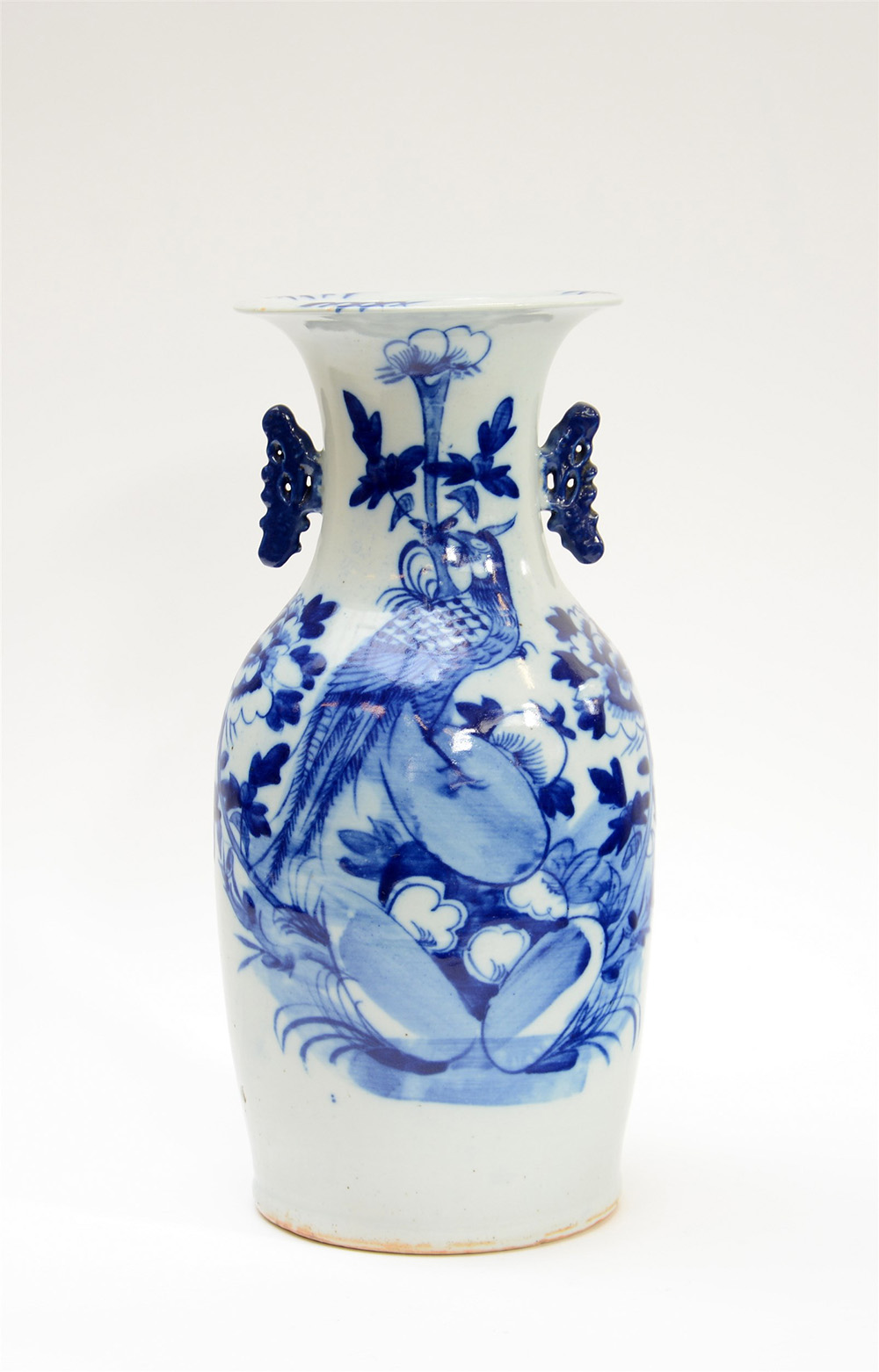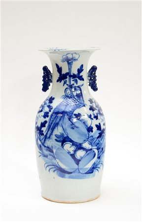 Vaso in porcellana bianca e blu con uccelli e fioriCina, sec XX (h. 42 cm.)-EN.