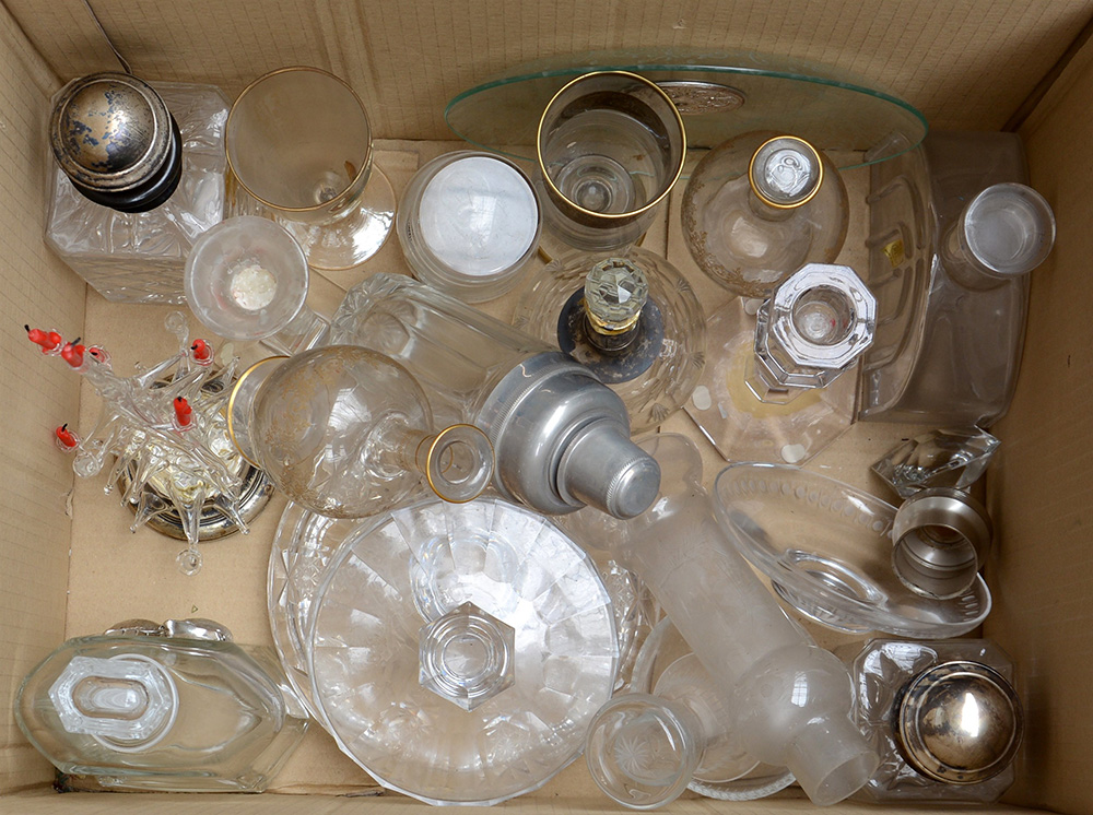 Cartone contenente numerosi oggetti in vetro di differente uso (difetti)