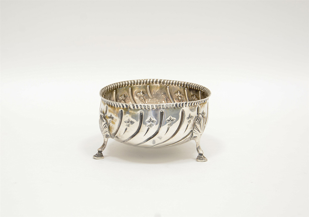 Alzatina portadolci in argento sbalzato deocorata a fesonature mosse (gr 150...