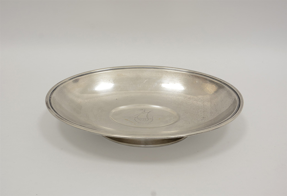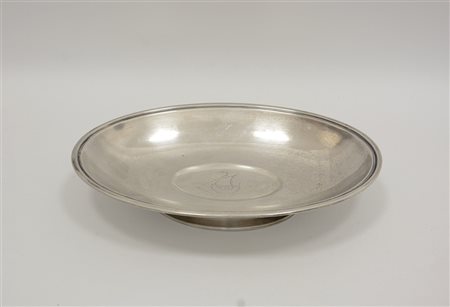 Centrotavola di forma ovale in argento con veliero inciso nel cavetto (gr 450...