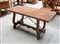 Tavolo in stile seicentesco spagnolo con sostegni a lira riuniti da traversa...