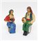 Coppia di sculture in terracotta dipinta raffiguranti un uomo e una donna seduti in costumi folcloristici (h max cm 32) (difetti)