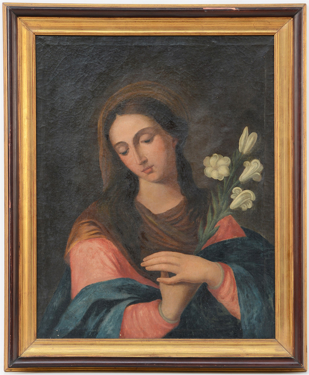 Maestro del secolo XIX, "L'Immacolata Vergine" olio su tela (cm65x51) in cornice (difetti)