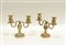 Coppia di doppieri in argento con fusto baccellato, bracci a doppia voluta...