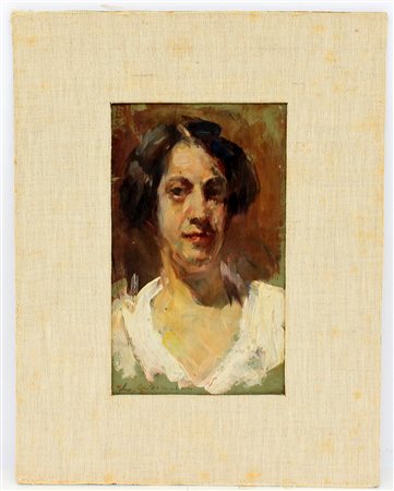 "Volto di donna" olio su tavoletta (cm 18x12) firmato in basso a sinistra. Provenienza: Coll. Nicola Girace Napoli, timbri al retro