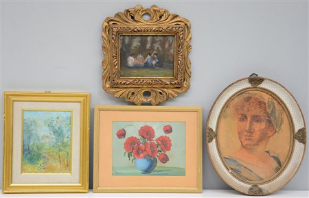 AA. VV. Lotto composto da quattro dipinti di soggetto, tecnica e dimensioni...