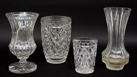 Lotto di quattro vasi in cristallo sfaccettato (h mx cm 26) (difetti)