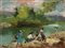 Francesco Bausi (Firenze, 1907) Lavandaie Olio su faesite, cm. 30,3x40,2...