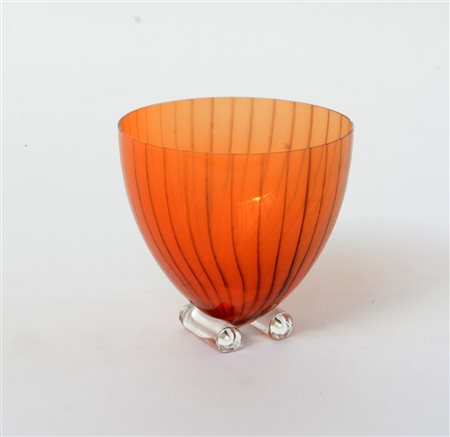 Manifattura nord-europea.Vaso in vetro incolore e a canne arancioni. Seconda...