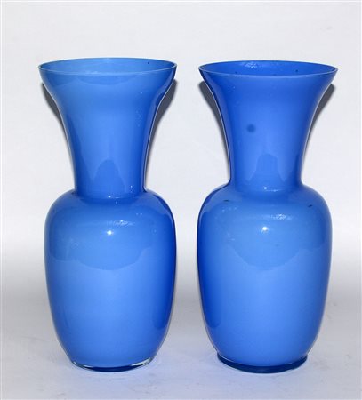 Lotto 4553 | Coppia di vasi a balaustro in vetro opacizzato celeste (h cm 35) (lievi difetti)