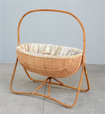 Culla per neonati in giunco e malacca. Produzione Italiana, anni '50. (cm...