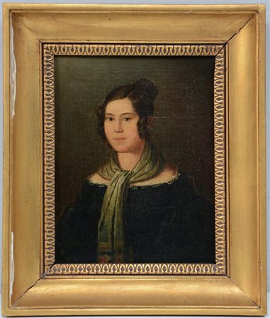 Artista del secolo XIX "Ritratto di dama" olio su tela (cm 33,5x24) in cornice