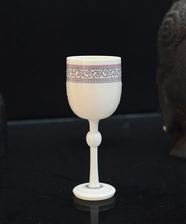 Piccolo calice in avorio tornito con fascia decorata a motivi vegetali