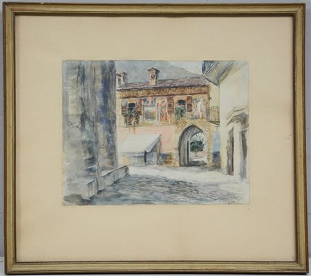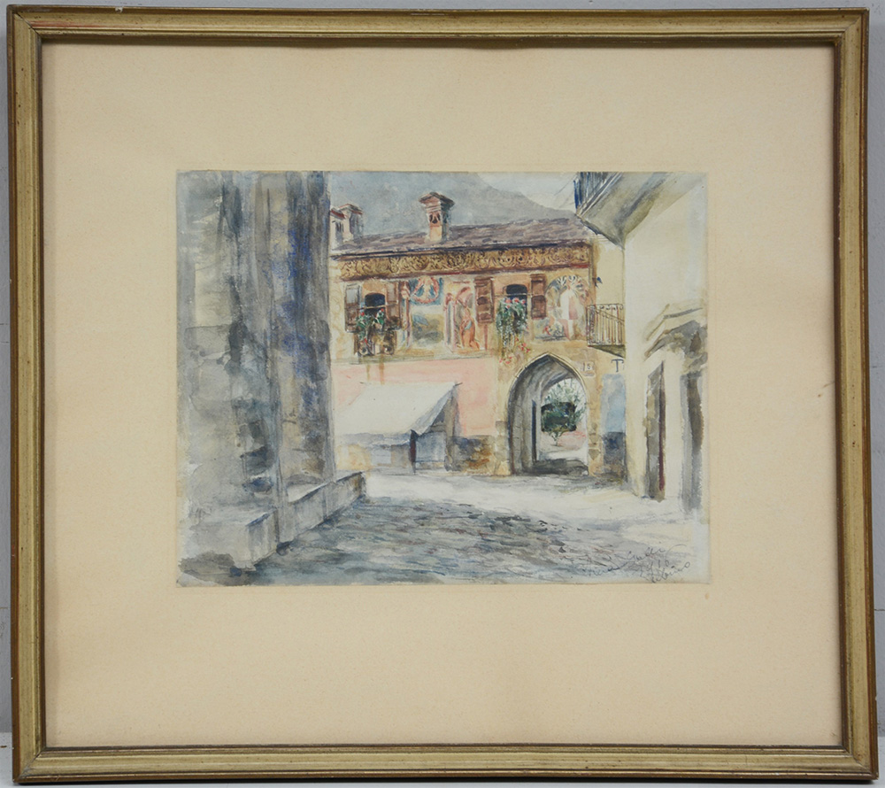 Nina Galli "Scorcio di Albino" acquerello (cm 20x25,5) firmato e datato 1916...