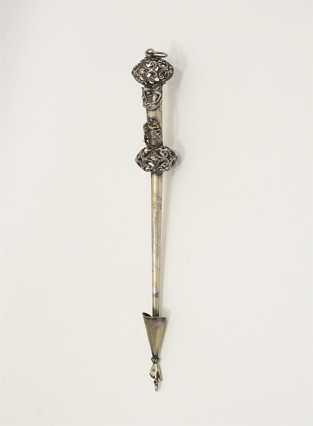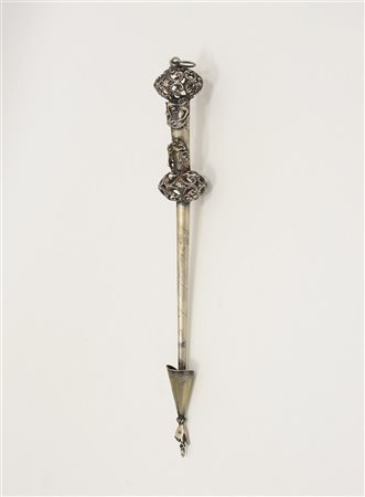 Jad in argento con nodi traforati e applicazioni floreali. Manifattura Europe secolo XX (h. cm 29) (g 70 ca.)