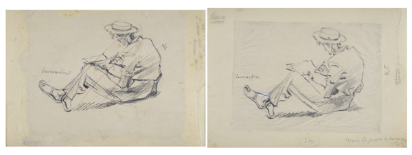 Piero Bernardini (Firenze, 1891 - 1974) Uomo che disegna Carboncino su carta, cm. 24x35 (ciascuno) due disegni firmati. € 100/200