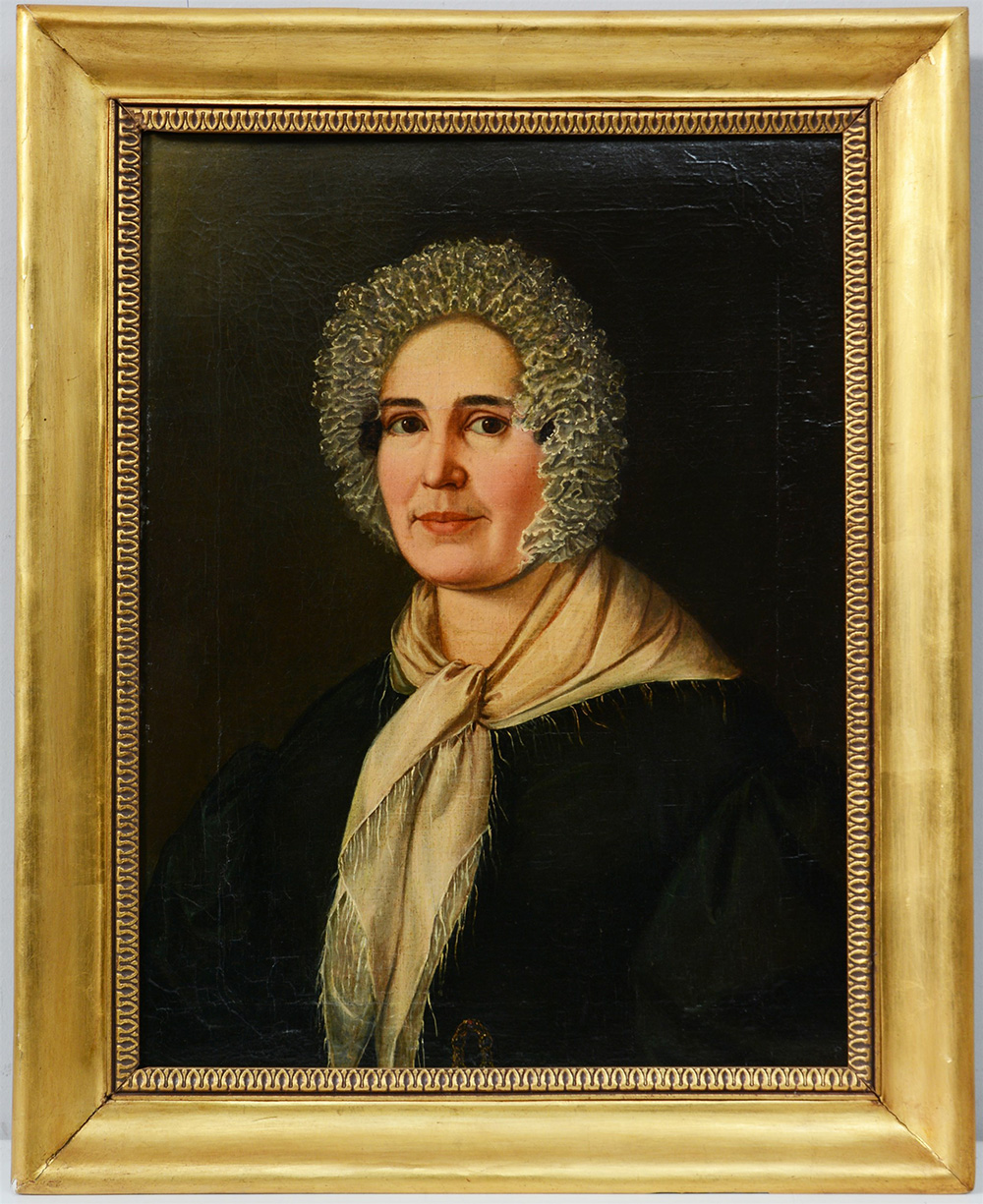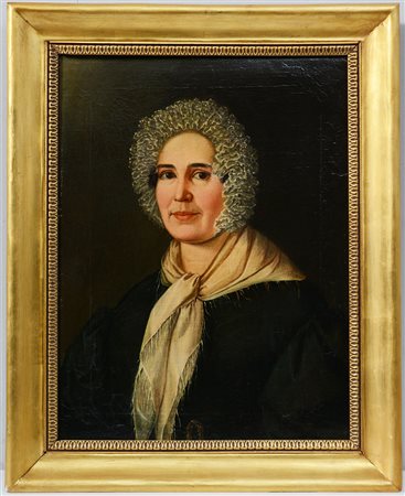 Maestro del secolo XIX "Ritratto di gentildonna" olio su tela (cm 64x49) in cornice (difetti e restauri)