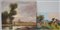 AA. VV. "Paesaggi con figure" due dipinti ad olio su compensato di misure diverse, firmati