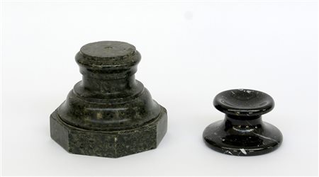 Lotto di due basi in marmo di cui uno con campana in vetro (h max cm 23)...