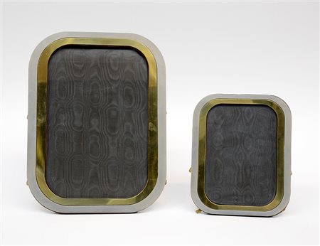Lotto composto da due cornici da tavolo con profilo in metallo argentato e...