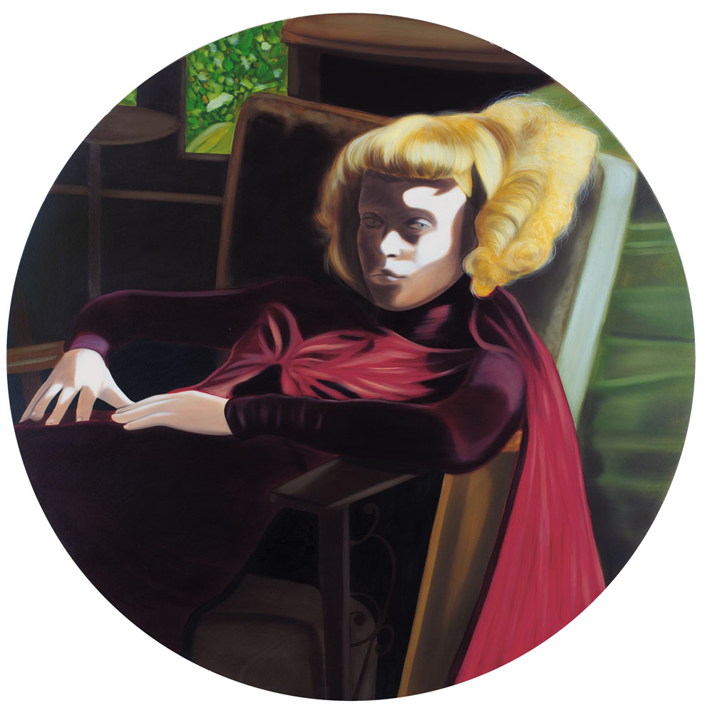 ALBERTO CASTELLI Torino 1970 - Meshes of the afternoon, 2004, olio su tavola circolare diametro cm. 91,5; titolo, anno e firma al retro, dichiarazione d'autenticità dell'artista e timbro della Galleria d'Arte Nuova Artesegno (UD) su foto, opera senza cornice.