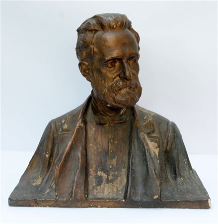 "Gentiluomo" busto in gesso dorato (h cm 63) (difetti)