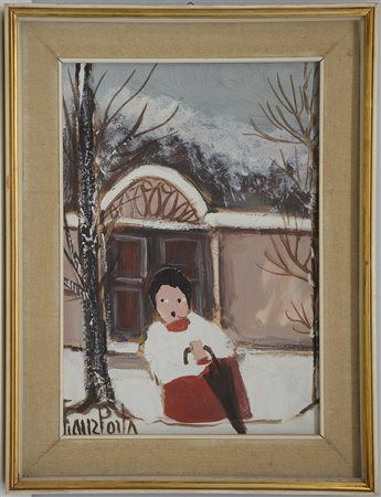 Franz Porta (1937 - 2001)"Chierichetto con la neve" olio su masonite (cm...