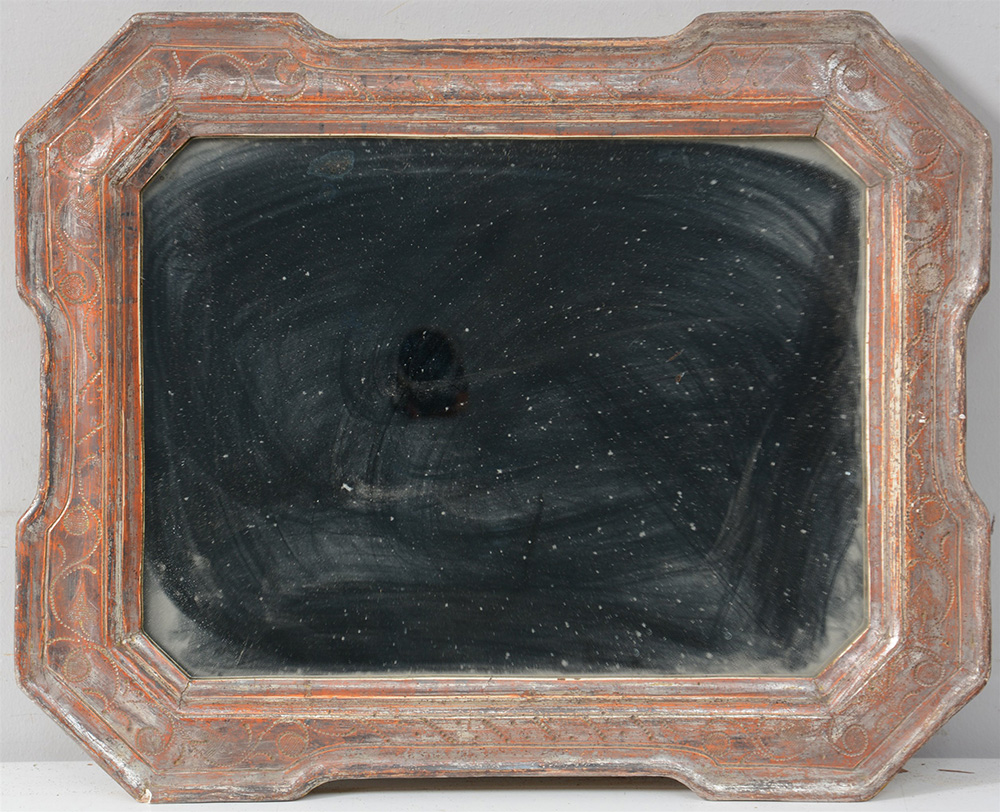 Piccola specchiera con cornice a vassoio e fregi a secco (cm 44x54) (difetti)
