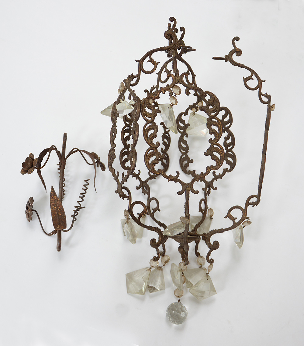 Struttura per lampadario da portico in metallo con pendagli in cristallo sfaccettato (difetti e mancanze)