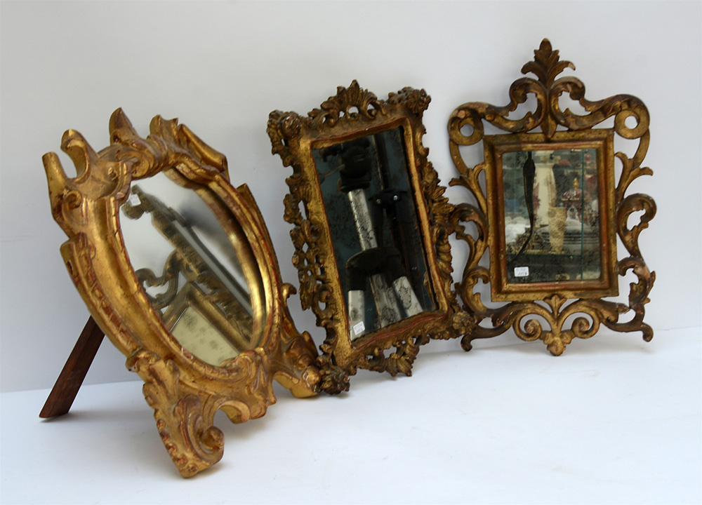 Lotto composto da due specchi e un cartagloria del sec. XIX, misure e fatture diverse (difetti e mancanze)