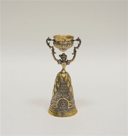 Coppa dell'amore in argento dorato. Germania, Hanau, fine XIX-inizi XX secolo (h. cm 12,5 ca.) (gr 80 ca.) (difetti)