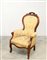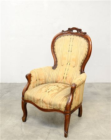 Poltrona in noce con schienale intagliato fasce e gambe mosse (difetti)