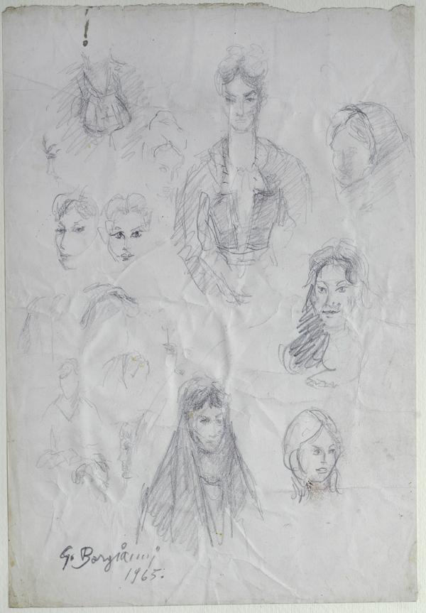 Guido Borgianni (New York, 1915 - Firenze, 2011) Studi per volti, 1965 Matita su carta, cm. 34x23 Firma e data in basso a sinistra. € 200/400