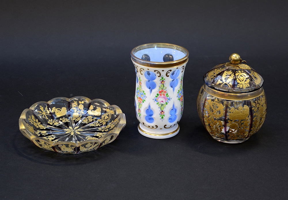 Manifattura di Boemia, lotto composto da un vasetto e un porta caramelle con...