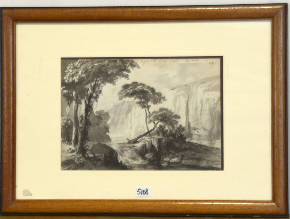"Cascata d’acqua" acqurello su carta (cm 22x31) iscritto in alto a destra in cornice (difetti)