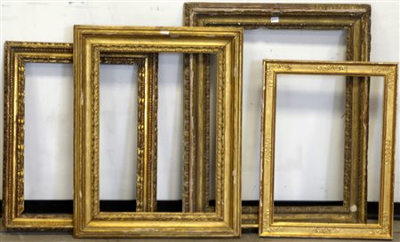Lotto composto da quattro cornici in legno laccato e dorato di varia epoca e...